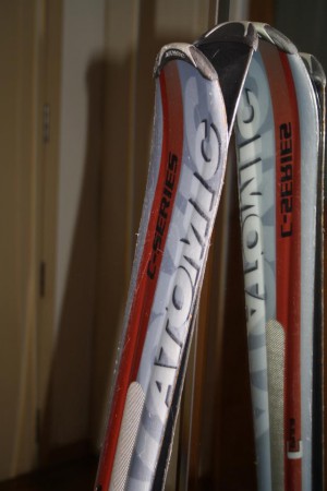 Esquis Atomic model c-series color taronja, blanc, negre de 158 cm d'altura. Cera i perfils renovats l'any passat. En perfecte estat inclou els pals.